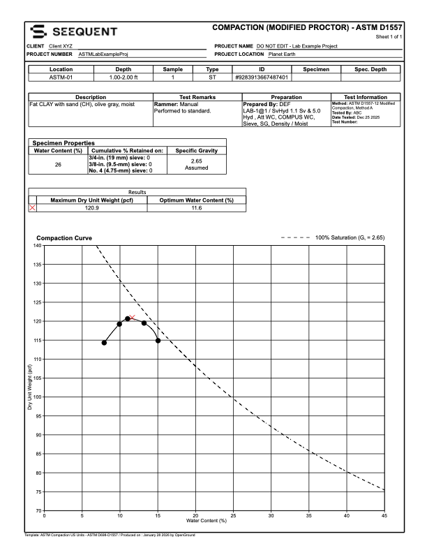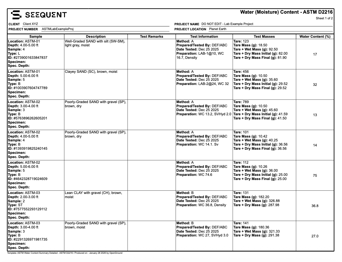Default ASTM and BS test procedures: OpenGround includes support for default test procedures, including native calculations, enabling users to go from raw lab test data to results and generate corresponding test certificates and summary reports. To help you get started, the platform provides fully configurable report templates based on international testing standards.