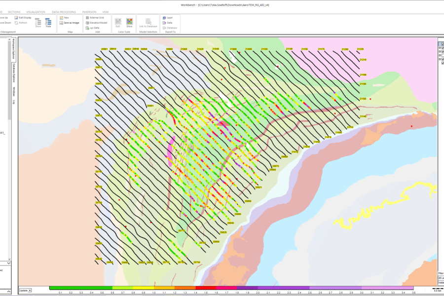 O Workbench aumenta o valor dos efeitos dos dados de polarização induzida nos dados eletromagnéticos no domínio de tempo para melhorar os modelos de mineração